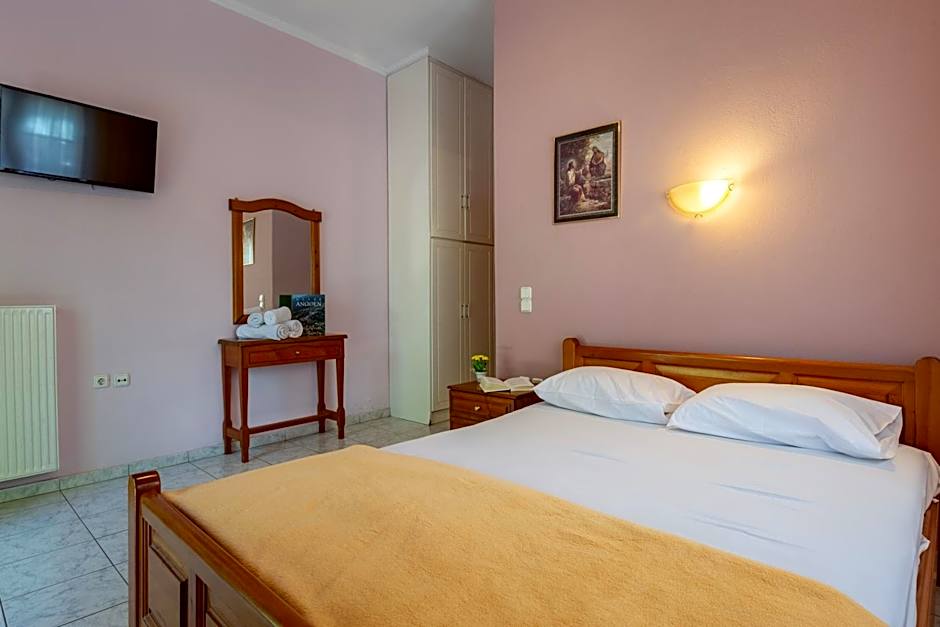 lovely traditional hotel set amongst the Meteora rocks. Great location for hiking tour and monastry trip. Breakfast was simple but well presented. No evening meal but they own a lovely restaurant nearby and you get a discount. We were also able to use a pool nearby for 10 euros each all day which was excellent for our free afternoon as it was so hot. Host was very friendly and welcoming