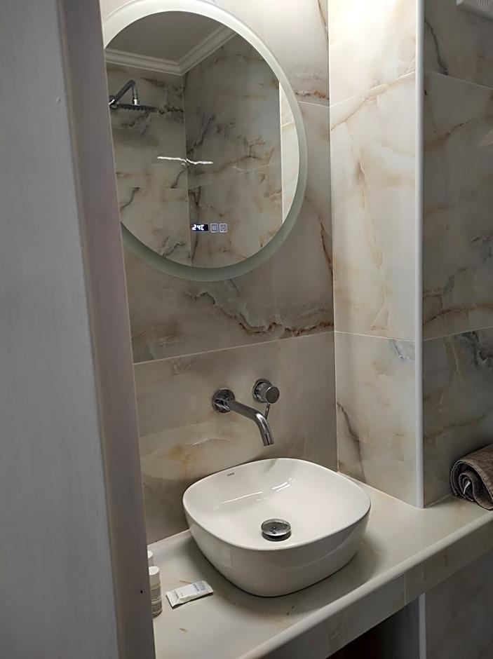 Such a pretty hotel, beautiful pool, gorgeous views of the hills and church, delicious breakfast with the best carrot cake I’ve had, and most importantly, a friendly and accommodating owner who made us feel very welcome. Our room was very spacious with useful cooking facilities and a charming little balcony and terrace. We walked through narrow and charming laws to get to the hotel - it was a 10-15 min walk from the port. The surrounding area was quiet but an easy walk to restaurants and shops. The bus stop was 5 min walk away to take you to other parts of the island. The general vibe was quiet, private but friendly.