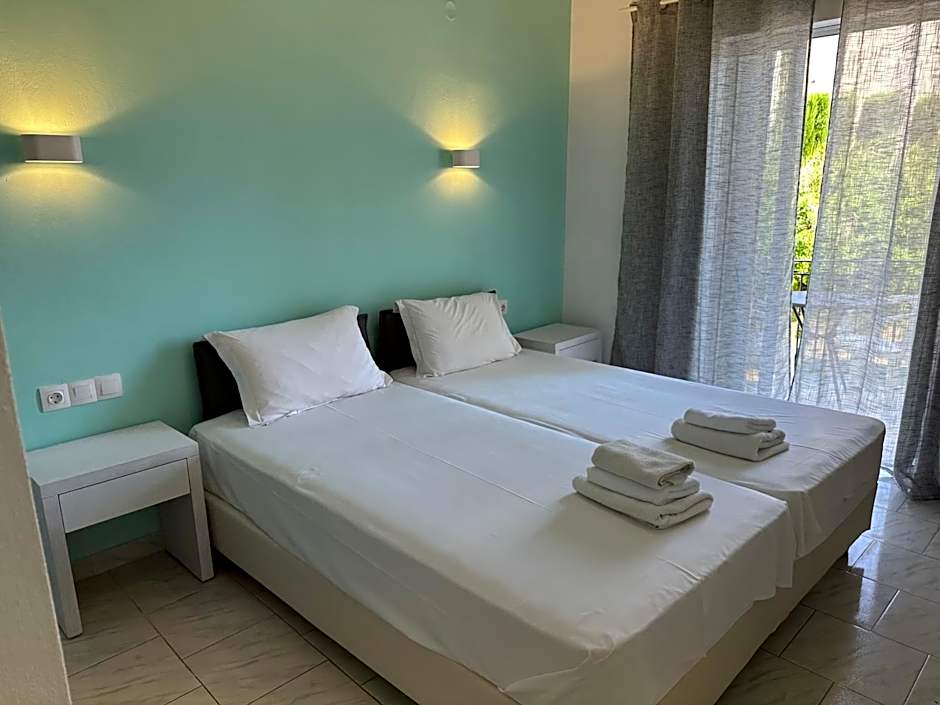 The Hotel is clean.The room is modern with comfortable bed.The view from the room to the sea is amazing.You cross the street and you are at the beach with free sunbeds & umbrellas. Beach service is provided. The hotel has a taverna at the garden with great food.The owners and the staff are very friendly and helpful. Thank you very much for everything! We will definitely come back!