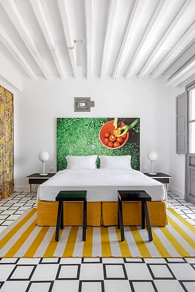 This split-level suite offers view to the Aegean Sea and a private pool with a spacious deck. On the upper floor, you will find a bedroom and a bathroom with shower, while the ground floor includes another sleeping area and a second bathroom with bathtub. A dining and a living area are also featured. A Bose sound dock station for iPods and iPhones, as well as a Nespresso coffee machine are offered. Please note that this suite is fitted with either 2 large double beds and a sofa bed or 4 singles and a sofa bed. Bedding type is upon request. Please note that the extra guest will be accommodated in a roll-away bed.