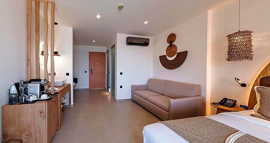 Set along the Kardámaina coast, this beachfront retreat puts sun, sea, and a breezy vibe within easy reach. A private beach area and a free outdoor pool invite lazy afternoons by the water, with snorkeling available for an extra charge for those curious to explore the crystal depths.