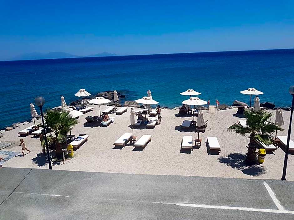 Address: 28is Oktovriou. Free on-site parking, a restaurant, and free Wifi set the scene, while direct beach access comes with a sun deck, terrace, balcony, and air conditioning in the rooms. Landmark views add to the experience, along with non-smoking rooms, free beach umbrellas, private entrance, and practical extras like horseback riding (extra charges) and kids' meals.