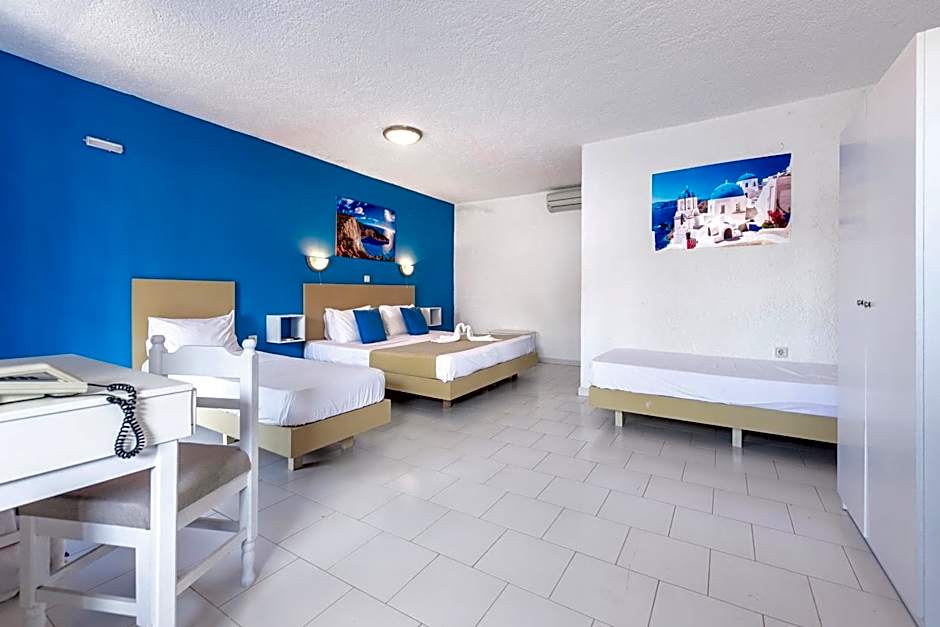 Beautiful Greek style hotel with an amazing view of the sea … a panoramic sunset view from the terrace upstairs…. Everything was really as it should be . Very clean room and awesome staff … For sure will come back again for a longer stay