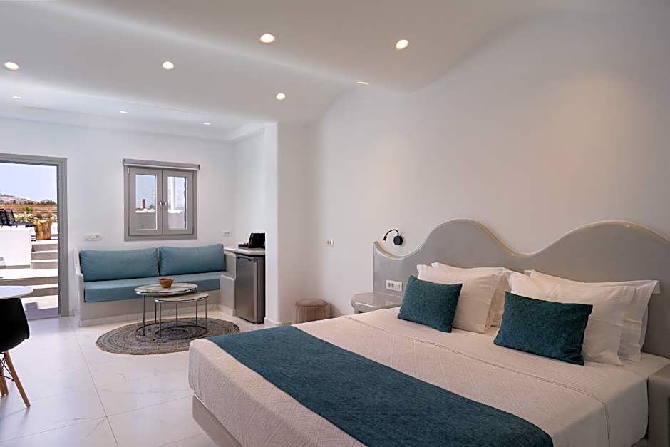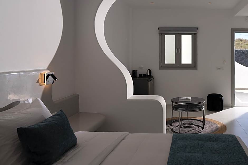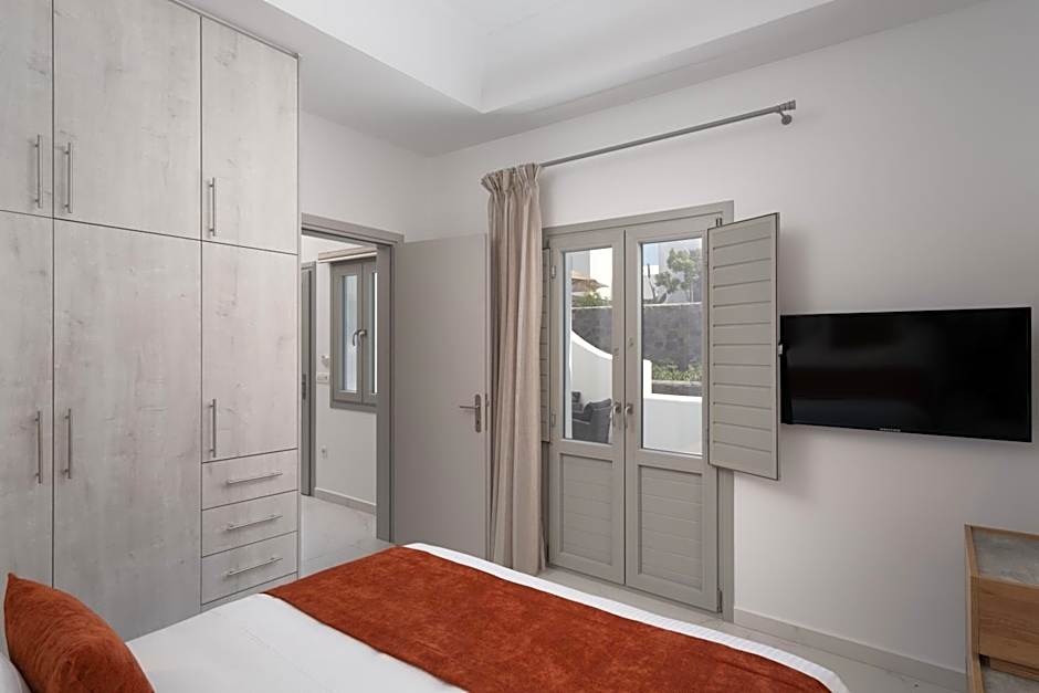 Everything,claudio,the owner,was very kind and open to suggest you how to move and where to go,room had every comfort,such as air conditioning,tv and a private pool with terrace and sunbeds,i would definitely reccomend it,also the position was 15 min by foot from Thira,that means you have the quiet and privacy that you cant easily find in the centre,but you are also very close to visit there and go out for dinner at night