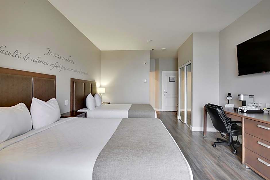 Suite with Two Bedrooms is 377 square feet and includes a king-size bed 150-183 width plus living room.