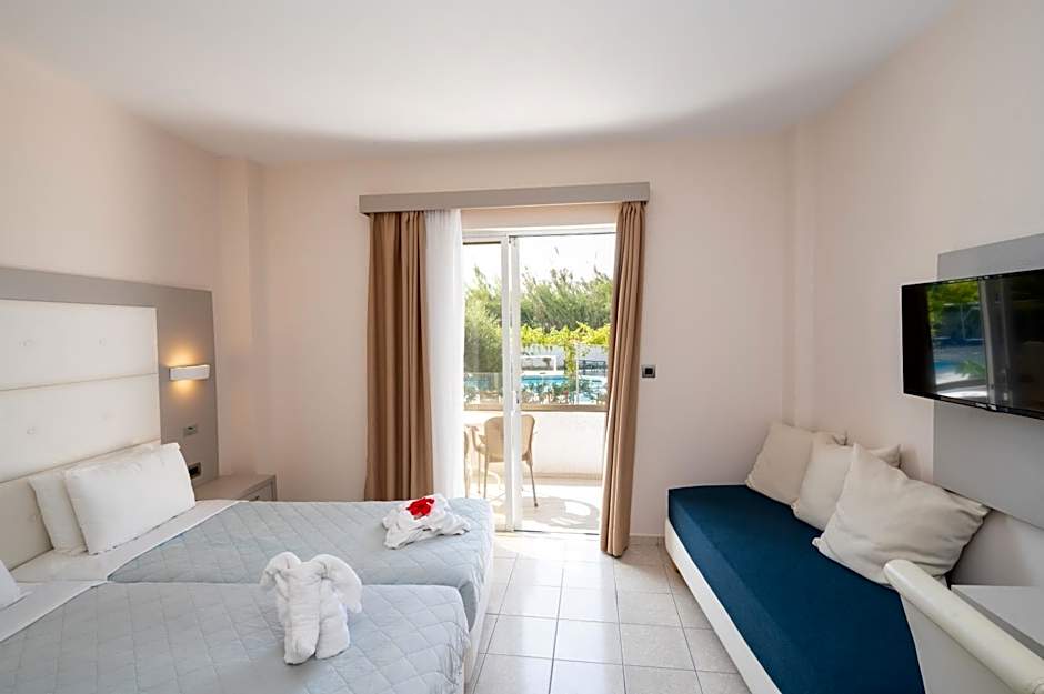 Nestled just 2,2mi from the lively heart of Kos, Costa Angela Seaside Resort offers a perfect retreat for sun lovers and relaxation seekers alike. This charming 3-star hotel boasts stunning ocean views from its balconies and terraces, allowing you to soak in Greece’s beautiful seaside scenery at any time of day. Start your mornings with a leisurely breakfast at the on-site restaurant, then lounge by the outdoor pool or take a stroll along the pristine beachfront equipped with optional beach umbrellas and chairs for ultimate comfort.