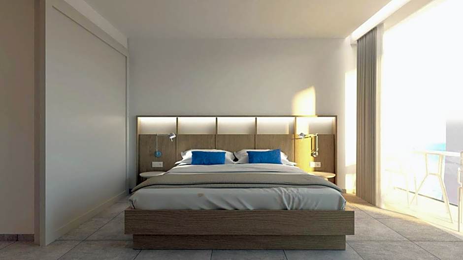 The hotel offers Double Rooms with Sea View, accommodating 3 adults and 2 children, featuring a king size bed, two sofa beds, and two twin beds, and smoking is allowed. Additionally, there are Junior Suites with Sea View, also accommodating 3 adults and 2 children, with a double bed and a sofa bed, and smoking is not allowed.