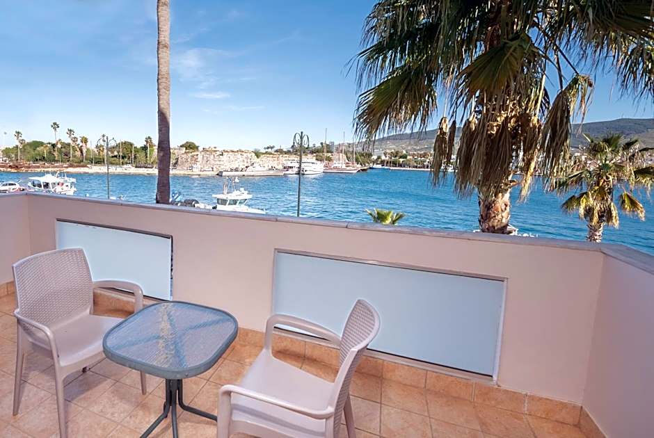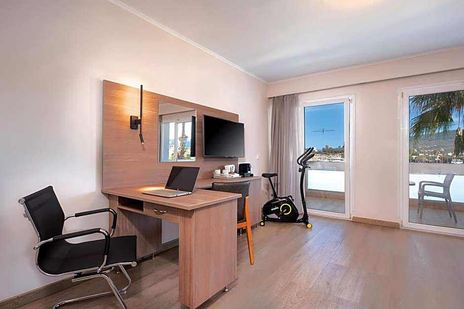 The location was perfect overlooking the harbour. The room was a very good size for a twin bedded room. Balcony views was exactly what we wanted. Lots of sun beds available. The breakfast was excellent, one of the best we’ve had in Greece. The bar and terrace was a lovely area to have an evening drink. Bar very reasonably priced