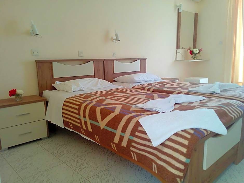 The swimming pool is fantastic..like an oasis.. Beautiful palm trees and garden is very well looked after. Rooms are cleaned every day. Very fresh and clean..you can keep towels if you like. Beds are comfortable, mattresses are better quality than you find in a lot of accommodation in Kos. Always a warm welcome when you arrive back. I loved this place and would definitely recommend it. It is very quiet at night,perfect for a good rest and sleep.