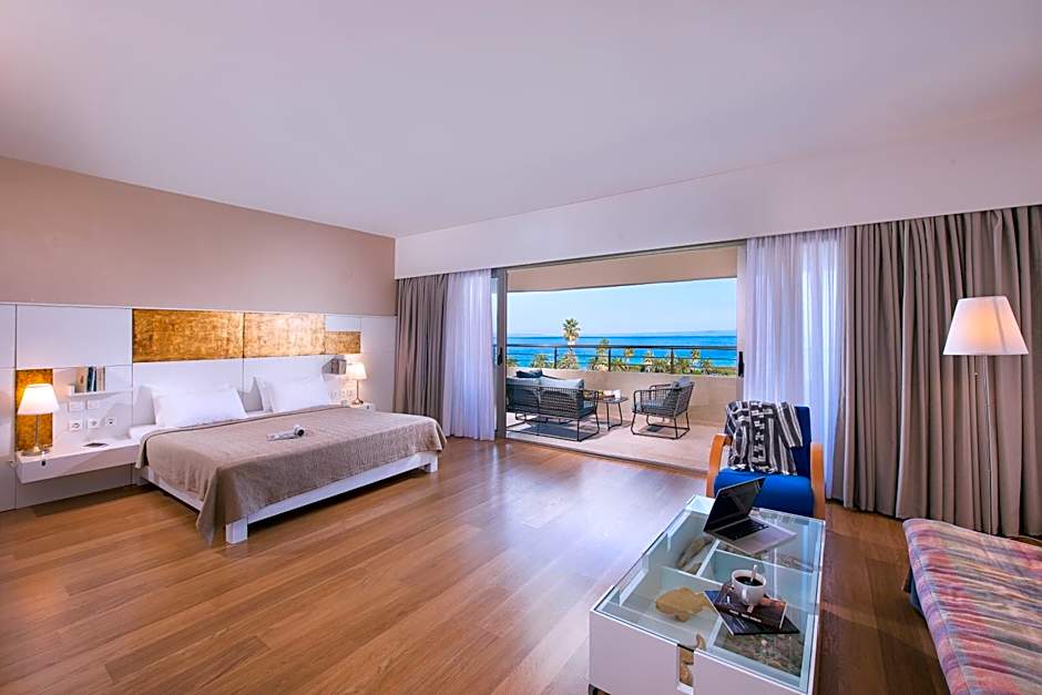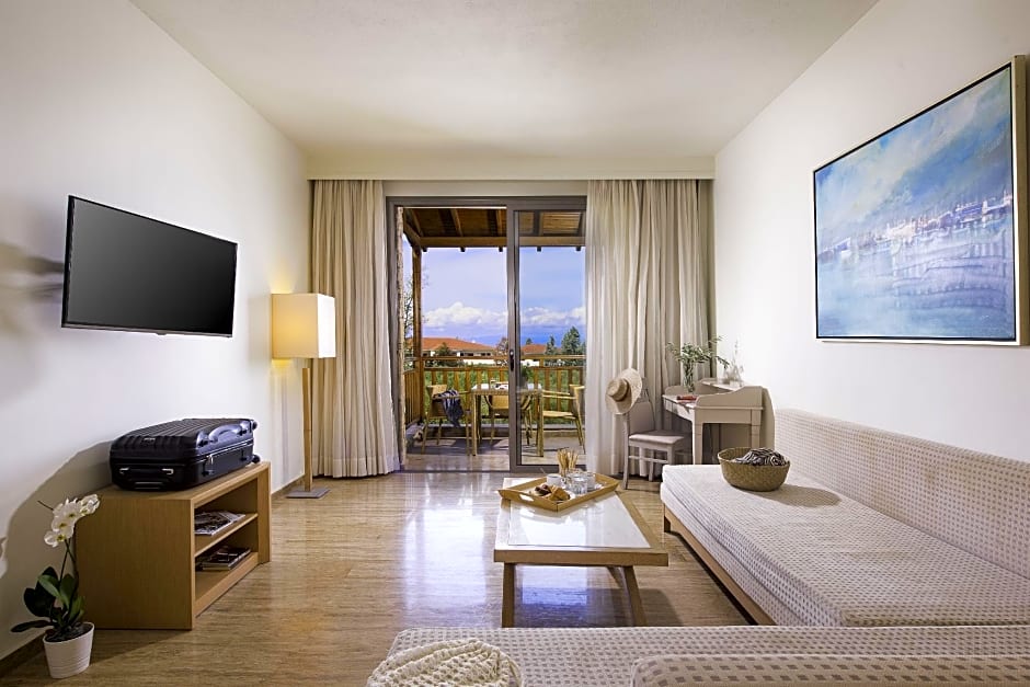 Enjoying panoramic views of Toroneos Bay and the hotel's gardens, this suite comes with a spa bath and separate shower. Decorated in earthy tones, it offers: - Nespresso coffee machine - satellite, LED TV - mini-bar.