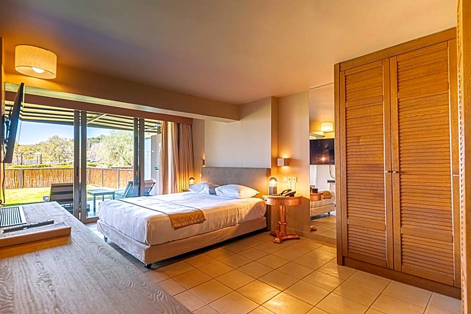 This open-plan room is located on the ground floor, right next to the beach. Includes a 55" LED TV, air conditioning, marble bathrooms, hairdryer, toiletries and mini-bar. It can accommodate up to 3 people. Children count towards max. capacity.