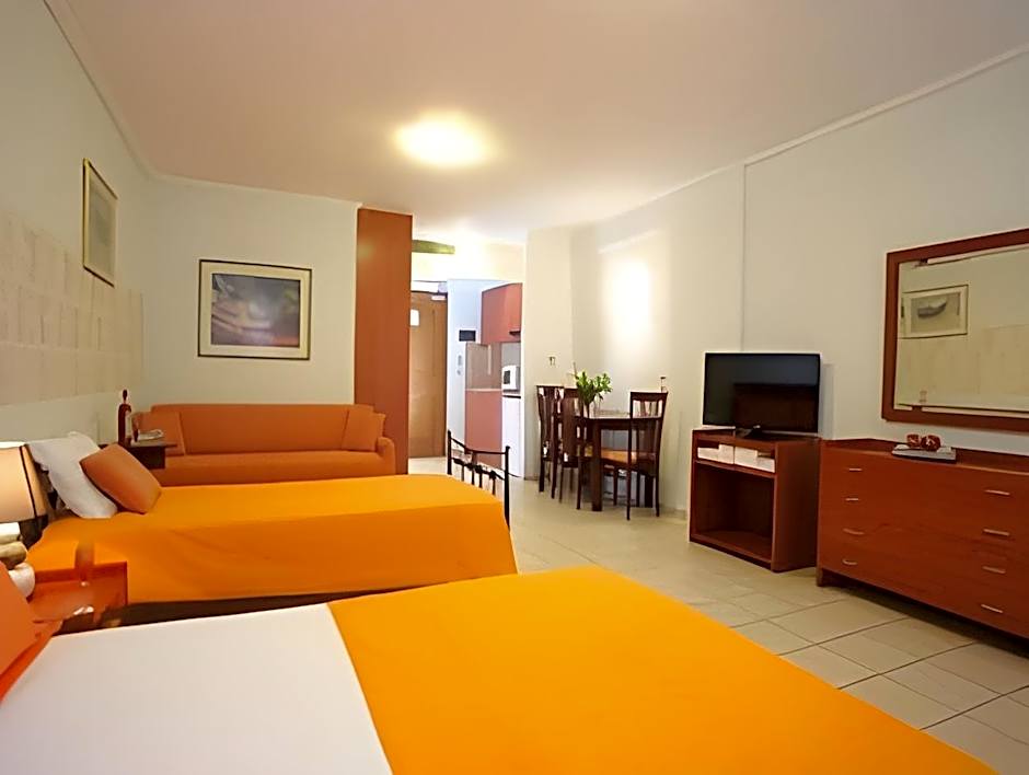 Each apartment is outfitted with all the essentials—think spacious soundproof rooms, a kitchenette for midnight snacks, and a lovely terrace to enjoy sunsets that would make even Instagram jealous. Enjoy extra perks such as free beach umbrellas, chairs, and a beautifully landscaped garden for lazy afternoons. And of course, for those who can't get enough of their workouts, a fitness center awaits (for a little extra). Get ready to experience the sunshine, the sea, and unparalleled hospitality at ; your Greek island getaway awaits!