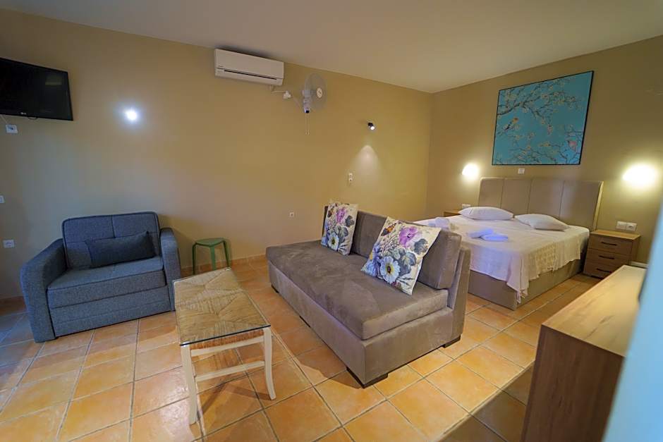 Spacious air-conditioned suite with a big veranda overlooking the Ionian Sea. It offers: -free WiFi -kitchenette -dining/seating area -satellite LCD TV -hairdryer.