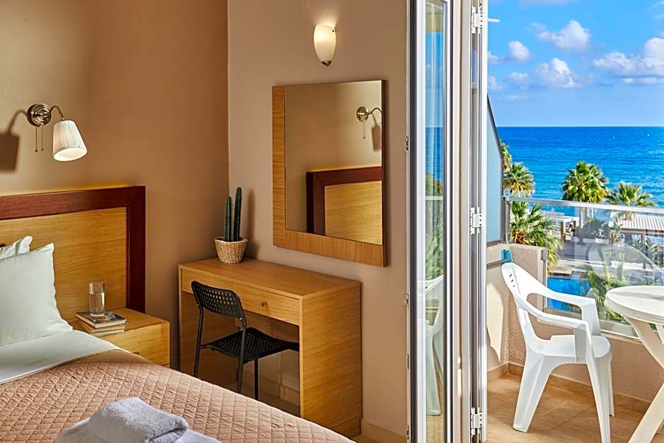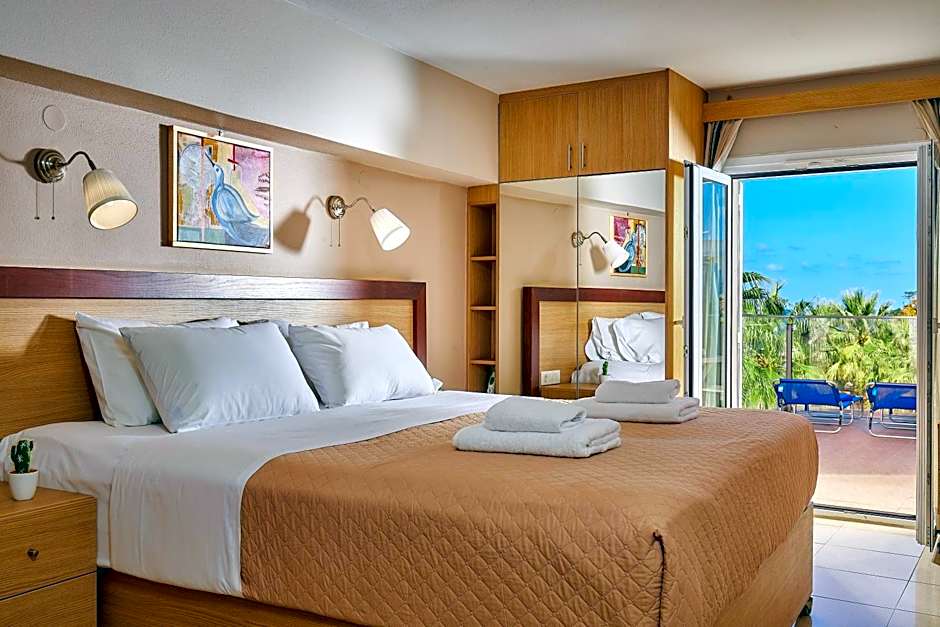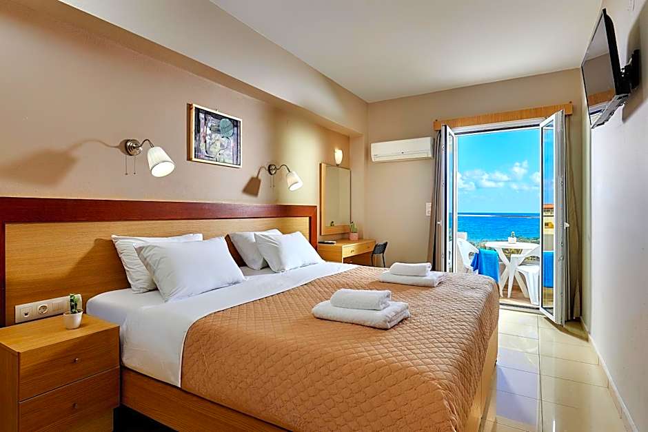 Enjoying Cretan Sea and pool views from its balcony, this air-conditioned studio offers a flat-screen TV with satellite channels. It has free WiFi, and a kitchenette with a fridge, microwave and cooking hobs. A hairdryer and an iron are included.