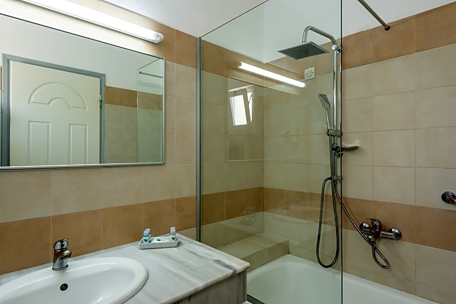 For those looking to soak up the Greek sun, Mediterraneo Hotel boasts a lovely outdoor swimming pool. This seasonal pool offers a refreshing dip and lets guests enjoy the saltwater features while basking in the warm weather. Whether you prefer to lounge poolside with a good book or take a leisurely swim, the pool area provides a tranquil setting to unwind and relax. With the pool just a few steps away, guests can easily switch from sunbathing to a refreshing swim whenever they please.