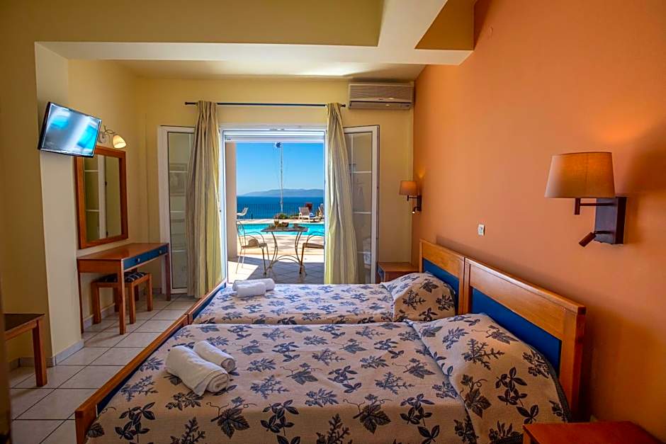 The pool and views were stunning. The owner of the apartments was very kind in accommodating our early arrival as we were not expecting the apartment to be ready. Nice touches like complimentary water and juice on arrival and departure a plate of fruits and chocolate etc. The maid was very helpful, and kept room clean, although her English was limited, but better than our Greek!