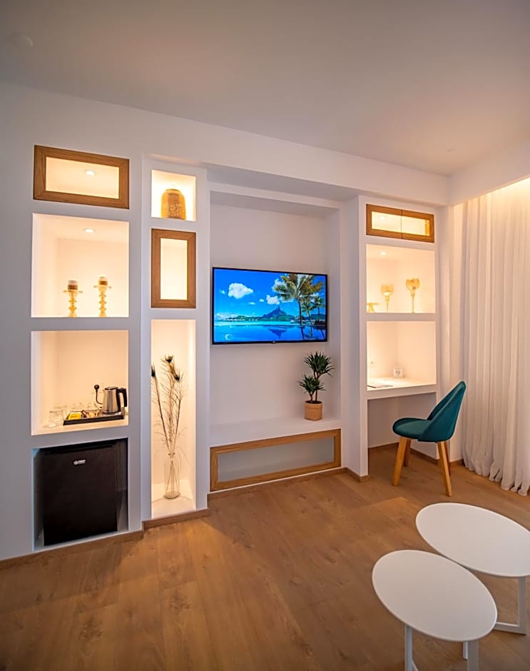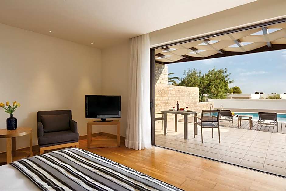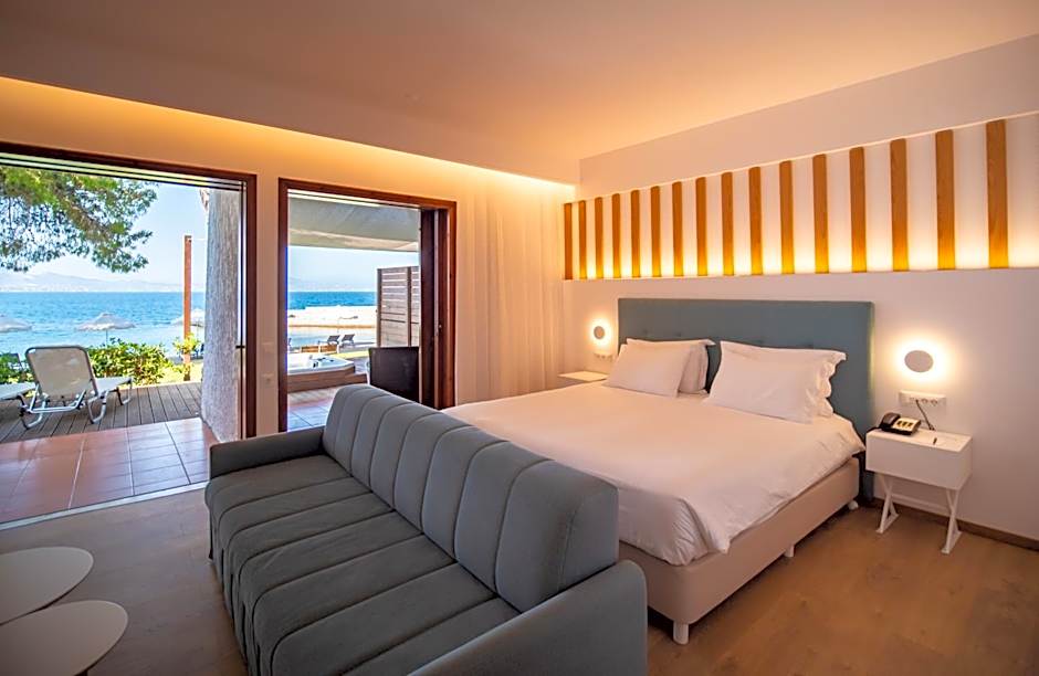 This suite's standout feature is the pool with a view. The suite offers air conditioning, a private entrance, a terrace with sea views as well as a private bathroom boasting a bath. The unit has 1 bed.