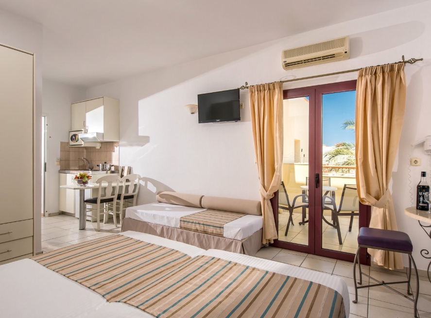 STUDIO CAPACITY 3 is 323 square feet and includes a king-size bed 150-183 width plus desk, satellite tv , cable tv, tea and coffee making facilities , and ironing set.
