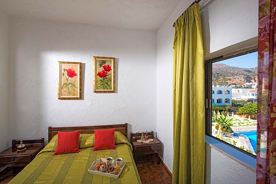 Guests can unwind in the soundproof rooms with private bathrooms, complimentary toiletries, and cozy beach chairs/loungers perfect for basking in the Greek sun. The hotel's garden and elevator add to the charm and accessibility of this delightful accommodation option in Mália. Dive into a relaxing and enjoyable vacation experience at Hotel Malia Holidays.
