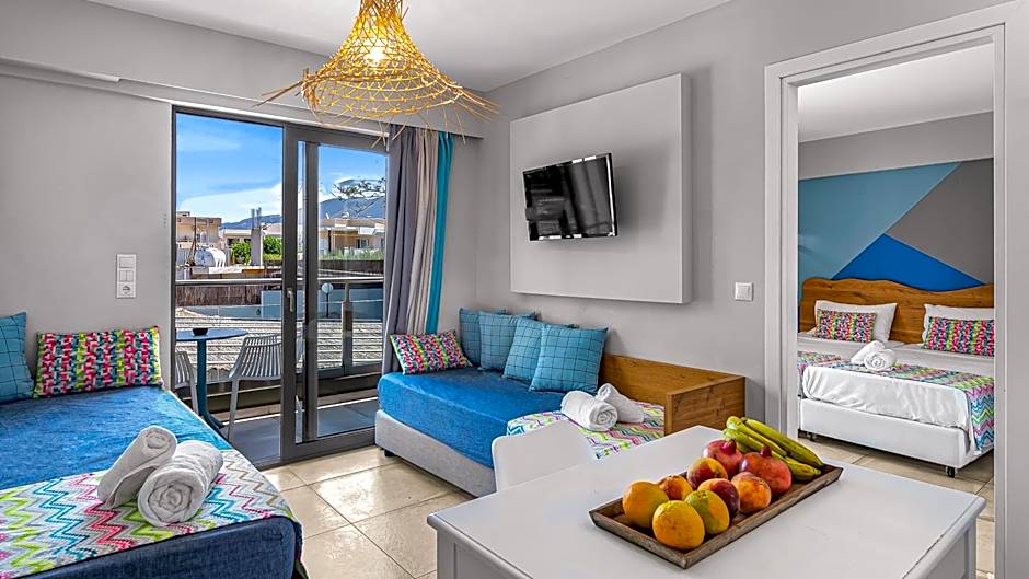 Accommodations come in four flavors: Apartment, 1 Bedroom; Apartment Deluxe, Balcony; Junior Suite, Sea View, Balcony; and Superior Apartment. All options are non-smoking and cater to different groups—2 adults and 1 child for the standard, 4 adults and 2 children for the balcony and sea-view options, and 2 adults and 1 child for the Superior Apartment—making it easy to find a comfortable fit for a coastal Greek escape.