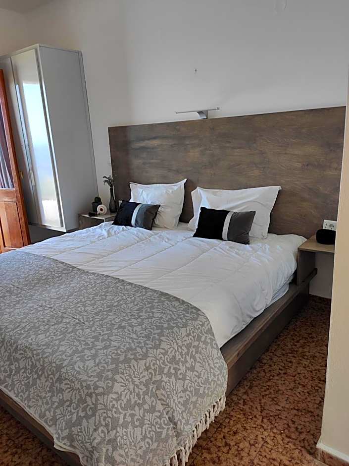 Very comfortable, good location with bus stop next to the hotel. Room was pretty and exactly what we needed. The view of Telendos from our room was amazing. We loved the communal food area also the bottles of water provided in the hotel so that we don't have to carry them ourselves as the tap water is not drinkable. Kalotina at the reception went above and beyond for us, she was brilliant and sure made our stay unique. We would visit again.