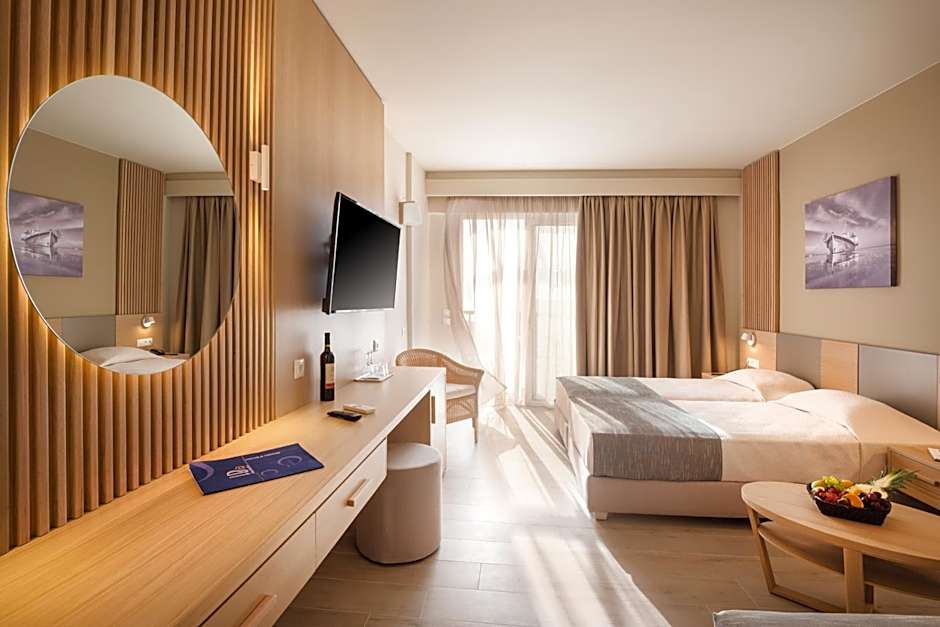 Dining options are as vibrant as the Mediterranean itself, with several on-site restaurants offering culinary experiences that will tantalize your taste buds. Start your day at the Asclepios Restaurant with a hearty international breakfast before diving into delightful lunch options at the Symposium. Craving something a little more relaxed? Isalos Burger House serves up juicy burgers that are perfect for a quick bite. As the evening rolls in, treat yourself to a feast at Thalatta, where you can indulge in both Greek and Italian flavors, or unwind with cocktails and gourmet bites at the chic Mosaic Gastro Bar. Each dining experience is crafted to ensure you savor every moment—after all, great food and good company are the true recipes for a fantastic getaway!