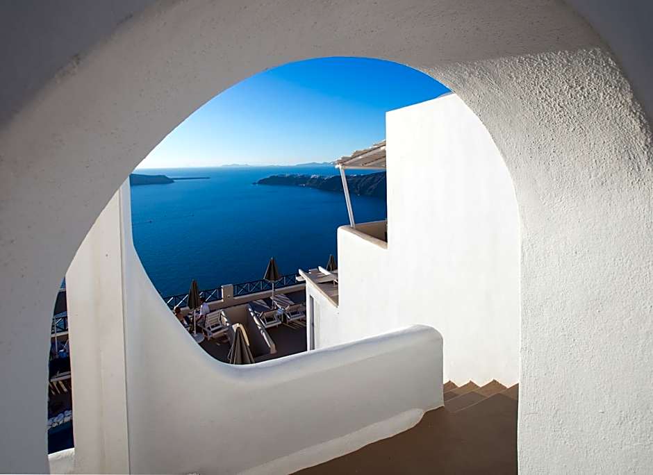 Traditionally furnished room with a flat-screen TV and DVD player overlooking the caldera. Please note that this room type does not have a balcony.