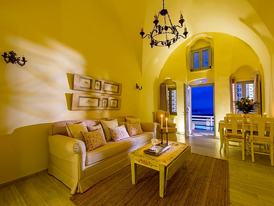 Uniquely decorated room enjoying magnificent views over the caldera from its furnished balcony. It includes a living and dining area and offers: -LED TV -air conditioning -coffee maker and toaster -bathrobes and slippers -board games. Complimentary drink is offered upon arrival.