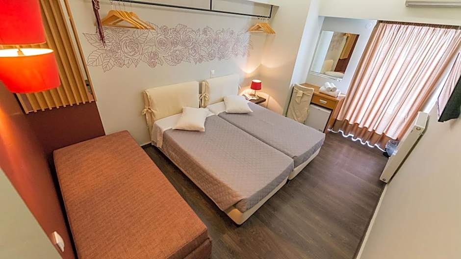 I was at the hotel to spend a before a flight home, my flight was late the following day so I asked if I could stay in their public areas with bags until I took a taxi to the airport? I was offered extra time free of charge in my room, they stored bags, gave me wonderful cold water (unasked for) fresh figs, advice on how to get to town, where to eat when there and how to get a taxi home. All this was volunteered to help me pass my time before leaving Greece. They made me a snack, offered to turn on tv/video for me to watch, they couldn't have done more. The breakfast was wonderful, traditionally Greek but with twists and loads of it. You could eat inside or in the cool gardens of the hotel......this is a rave review, they were fantastic, kind, spoke good English and beyond it for helpfulness.