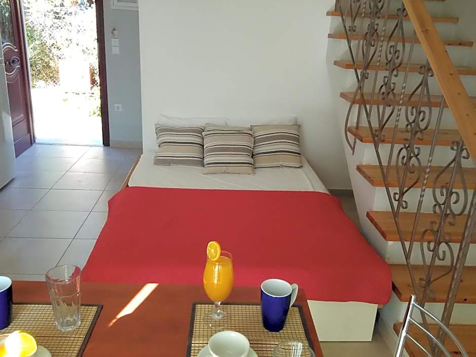 Location is just near the sea. The view is magnificent. A small wild but cozy beach in two minutes of walk. The studio has everything to feel comfortable. The kitchen place is equipped perfectly.