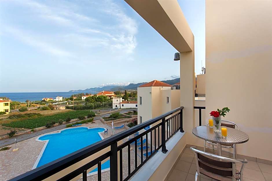 More spacious apartment with a large balcony with panoramic views over the swimming pool and the Castle of Monemvasia.