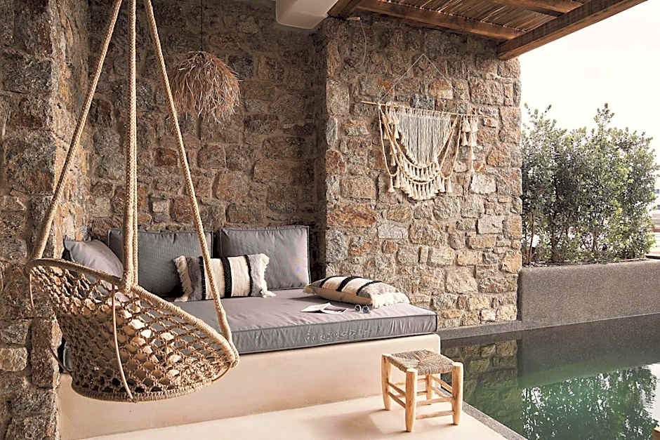 For a truly relaxing and rejuvenating experience, make your way to the outdoor pool at Amyth of Mykonos Agios Stefanos. Whether you're looking to soak up the sun or take a refreshing dip in the water, this seasonal pool offers the perfect oasis for all guests, regardless of age. By day, lounge on comfortable beach chairs, and by evening, unwind with a leisurely swim under the starlit sky. With pool and partial sea views available from select suites, you can enjoy the best of both worlds at this enchanting 5-star retreat in the heart of Mykonos.