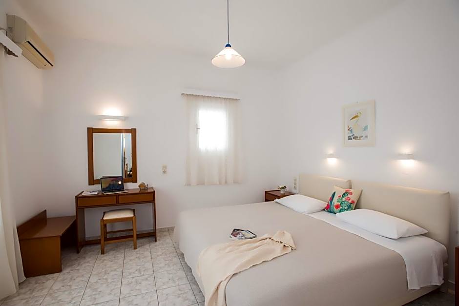Since before getting in I realized that Dimitra was very responsive: she booked our transfer from the airport we got in very late at night. The room was amazing had a balcony with a very impressive view of the Mykonos bay. The place is very nice decorated and very well maintained. She runs the hotel with her family, speaks very good english and she is always available for everything you need, she set us up for nails, hairs, watch the sunset, boat tours ....I couldn't ask for more. Better than a 5 stars hotel. Loved it!!!