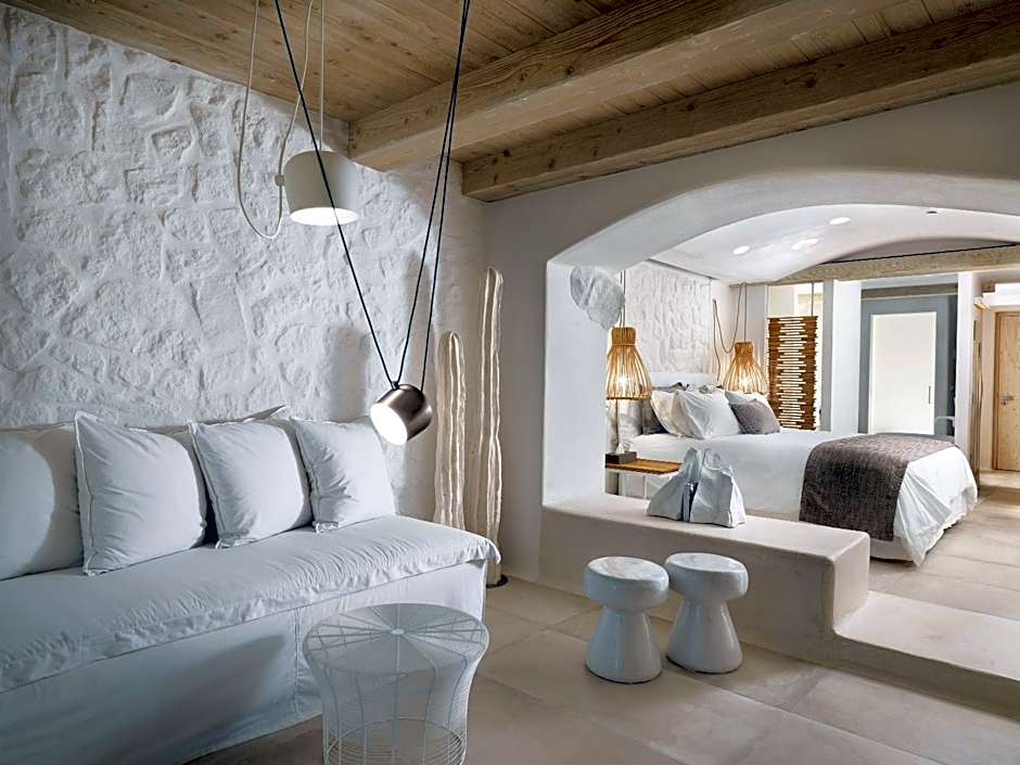 Contemporary design is the central feature of this extra spacious Suite. With a strong esthetic identity, it stands out for its innovative originality. A real personal retreat enjoying amazing sea views and offering everything you need for a luxurious stay: space, style and serenity. Discover a perfect getaway, Aegean style.