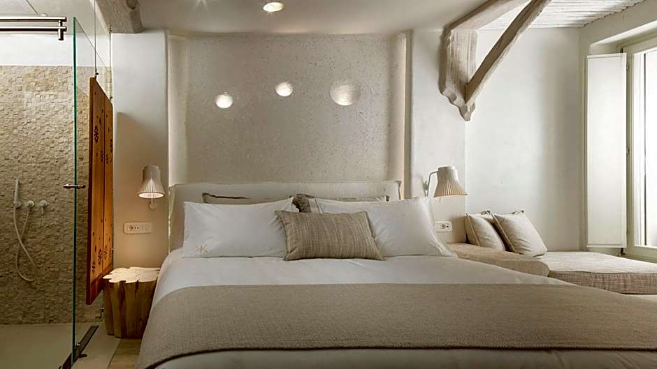 A stylish and spacious room that opens onto a private outdoor area featuring an open air hot tub. An intimate haven of relaxation. Just unwind and take in the breathtaking views of the infinite blue.