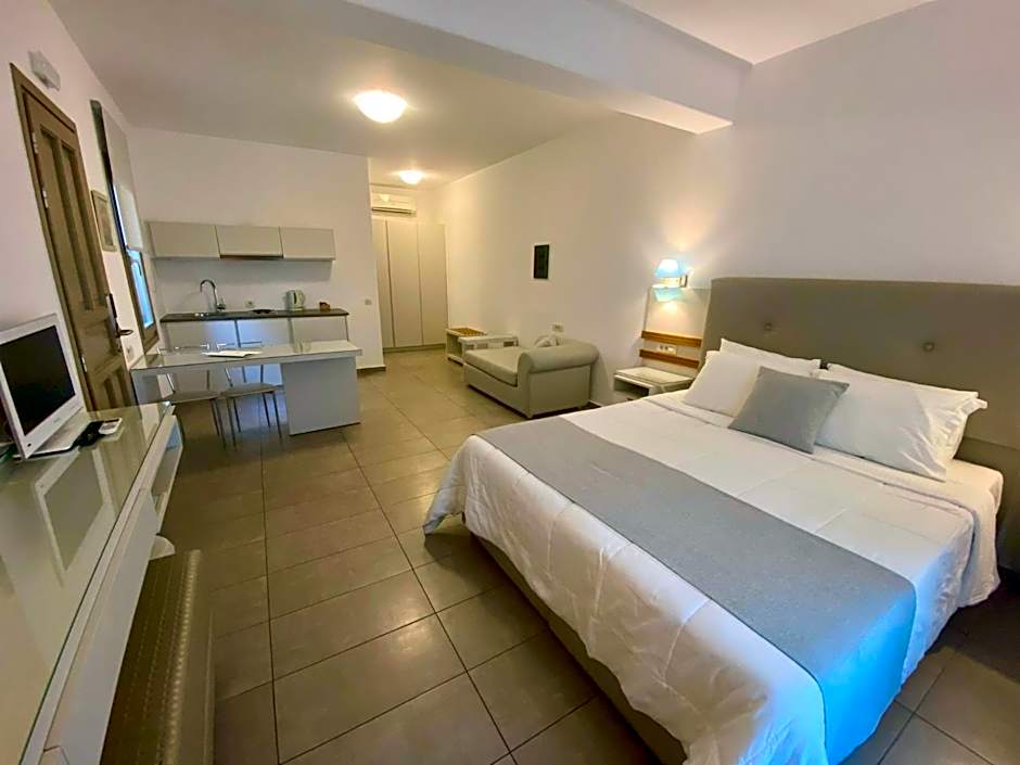 Offering more space, this modernly decorated studio features a kitchenette and a living area leading to a private patio. It offers: -satellite LCD TV -air conditioning -free toiletries and slippers -free Wi-Fi. Τhis studio can accommodate up to 3 people.