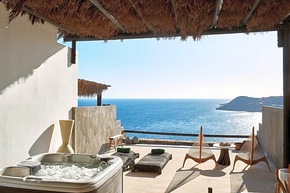 For those seeking the ultimate relaxation experience, Myconian Utopia offers rooms with Jacuzzi® amenities, allowing guests to unwind in style. Imagine soaking in a bubbling hot tub while taking in breathtaking views of the Aegean Sea or the hotel's lush surroundings. Whether you choose a Retreat, Grand, or Majestic room, these luxurious spaces provide the perfect retreat after a day of exploring Mykonos.
