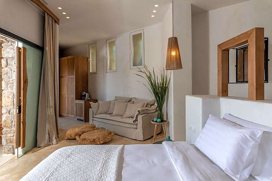 Featuring traditional Cycladic decor, this junior suite has a round balcony with views over the Aegean Sea.