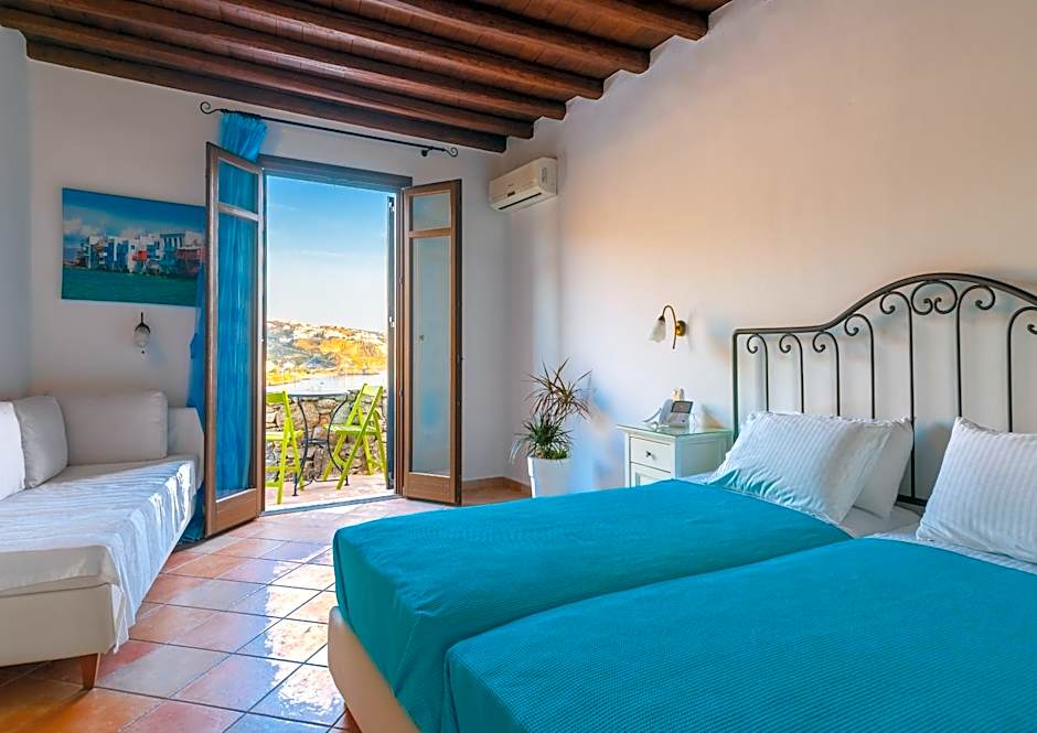The property was small, but the rooms were big enough to fit three people! Every day they cleaned our room and almost every day we got new towels! The breakfast was good and the people were very kind. They gave us good tips how to go to the city and other places on Mykonos!