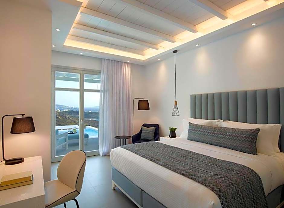 Featuring a private pool, this air-conditioned and Cycladic style villa opens to a balcony with Aegean Sea views. Offering a separate bedroom, it comes with: -a seating area with sofa and flat-screen, satellite TV -a kitchenette with mini-bar -free Wi-Fi.