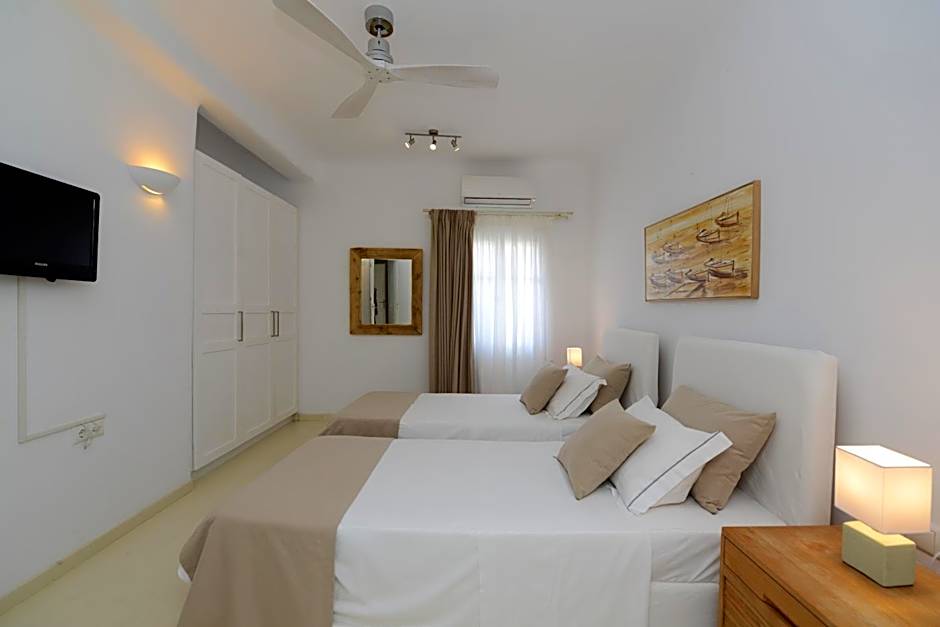 This spacious apartment features a private garden, equipped with sun loungers and a private outdoor dining area with views of the Aegean Sea. The property features a bedroom with private bathroom.