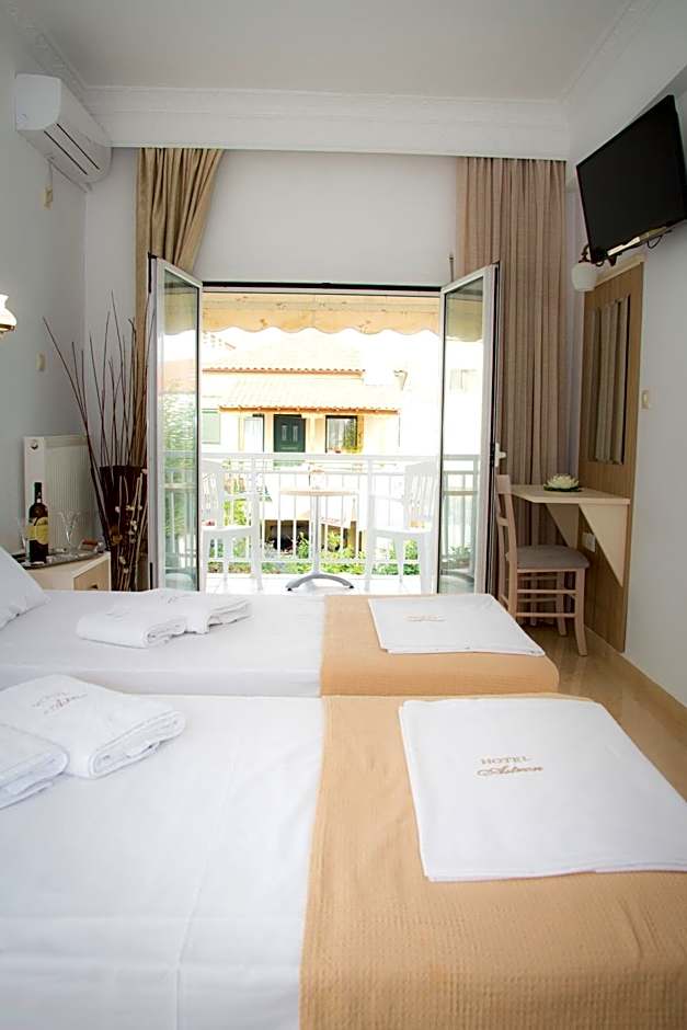 Hotel Astron offers three types of rooms. The Family Room without Balcony accommodates 4 adults and features twin beds and sofa beds. The Twin Room with Balcony accommodates 2 adults and offers twin beds. The Standard Twin Room Without Balcony also accommodates 2 adults and has twin beds as well. Smoking is allowed in the Twin Room with Balcony.