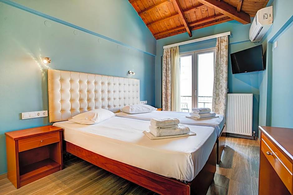 The location of the hotel is very central, 10 minutes walking distance to the port. Ms. Maria was very helpful and caring. With the suggestion of Maria, I had dinner at a wonderful restaurant in Skala Sikamineas.