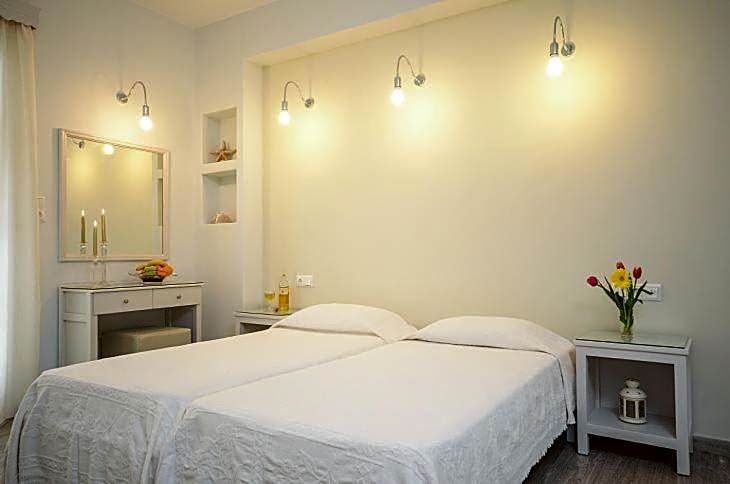 We stayed in the roof top room with outdoor jacuzzi and it was amazing! The price was very reasonable for what you get! It was a great location 2 mins walk to the beach & 5 mins to the port! Nice to walk through the quaint streets to and from the area. great restraints right around the corner in every direction. The room was brightly lit, warm showers, very clean and Irene the lovely women who created us with tropical juice was was so helpful and kind! Nothing beats that Greek hospitality.