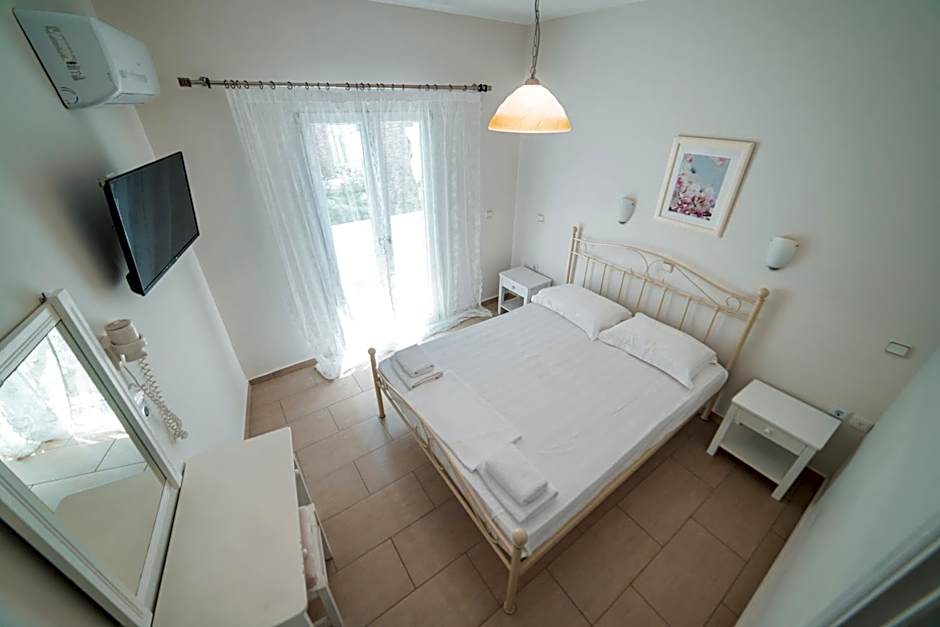 The rooms were spacious sound proof traditional concrete style. The pool area amazing with grass area and palm trees. Not common here. Not many hotels close, supermarket across the street, short walk to the centre of town and beach close also..staff, information and daily clean perfect. Breakfast provided with local produce especially the Naxos yoghurt and honey are to die for. Definitely recommend the stay for value for money