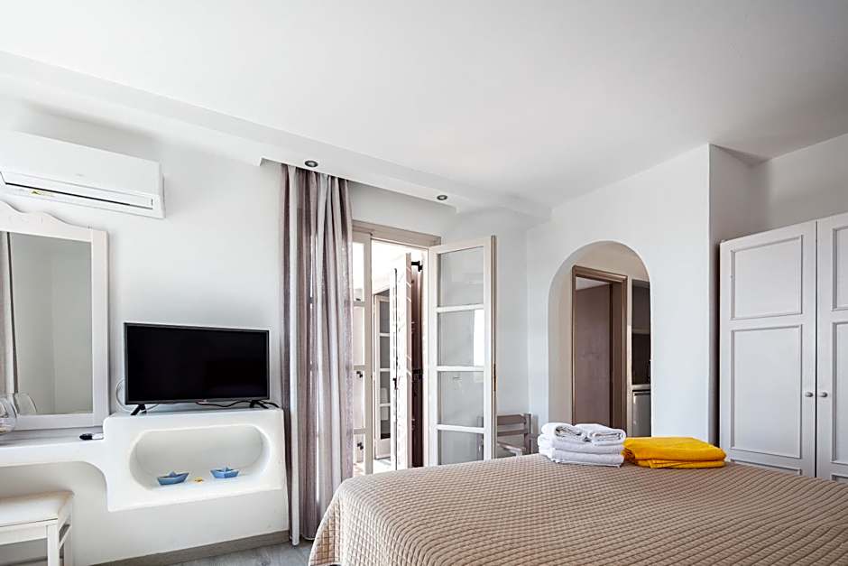 Rooms may offer balcony spaces with garden or mountain views, and terraces frame sunlit afternoons. Located at Agios Prokopios on Náxos, the hotel blends beach vibes with poolside relaxation, a stone’s throw from the island’s coast and 2,3mi from the city center.