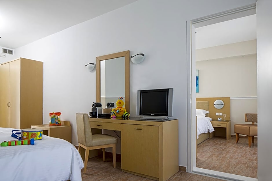 Located on the first floor and featuring 2 connecting bedrooms with 2 separate bathrooms and 2 balconies with side sea view. It also includes Guy Laroche mattresses, Early Learning Center (ELC) games, baby listening device, in-room Wi-Fi, Nespresso coffee machine, electric kettle, luxury bathroom amenities, LCD TV.