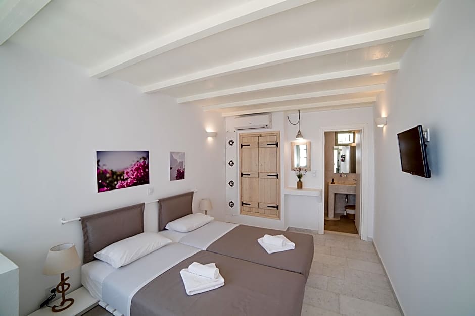 A diverse lineup of room types awaits, including Elegant Studio, Deluxe Double Room, Queen Room, Suite, and more. The accommodations cover a range of configurations, from studio and double setups to larger options for groups. This arrangement provides a comfy base for exploring Náxos’ charms, with easy access to the town’s lively rhythm and island-ready escapes.
