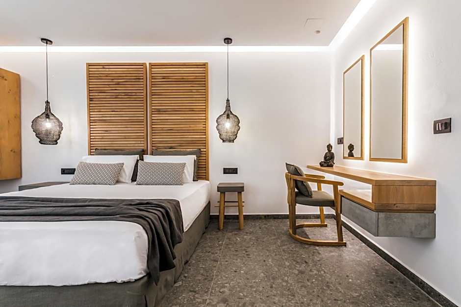 A beautiful, modern hotel with a lovely pool and gardens. The rooms were clean, the bed comfortable and a great shower with lovely toiletries. The staff were wonderful and arranged a hire car, taxis, restaurant recommendations, places of interest and a laundry service for us. The breakfasts are exceptional, homemade jams and treats every day. It's in a quiet area, just a 15 walk to Chora and a 10 minute walk to the nearest beach. Would highly recommend.