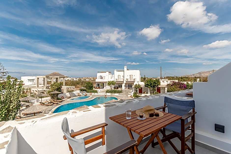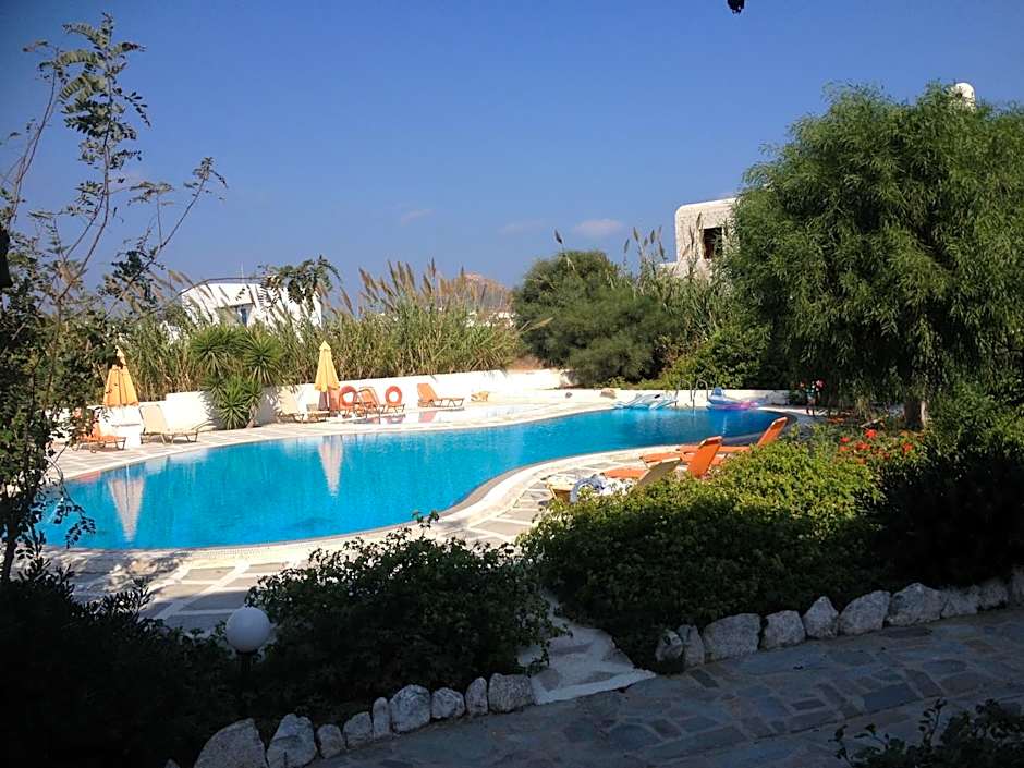 We have been staying at this hotel almost every year for a few days during our trip to the Cyclades (for the last 12 years). This speaks for itself - it is very close to the beach and opposite a supermarket. The rooms are good, the bathroom could be a bit bigger and newer but the sensational pool with plenty of sunbeds and umbrellas makes up for it. There is a small kitchen in the rooms (breakfast or salads can be prepared). You can eat on the balcony or terrace with a pool view. There is no street noise.